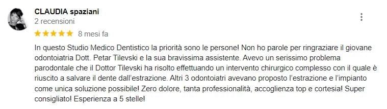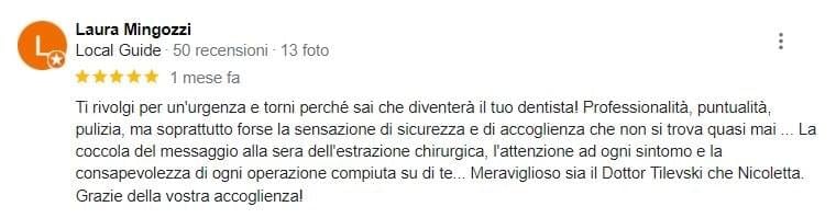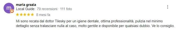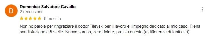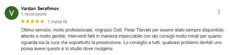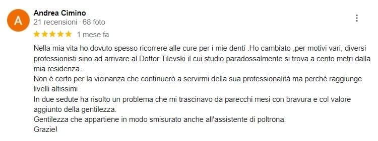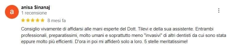 Ho consigliato e continuerò a consigliare lo Studio Dentistico Tilevi Dental a chiunque.”